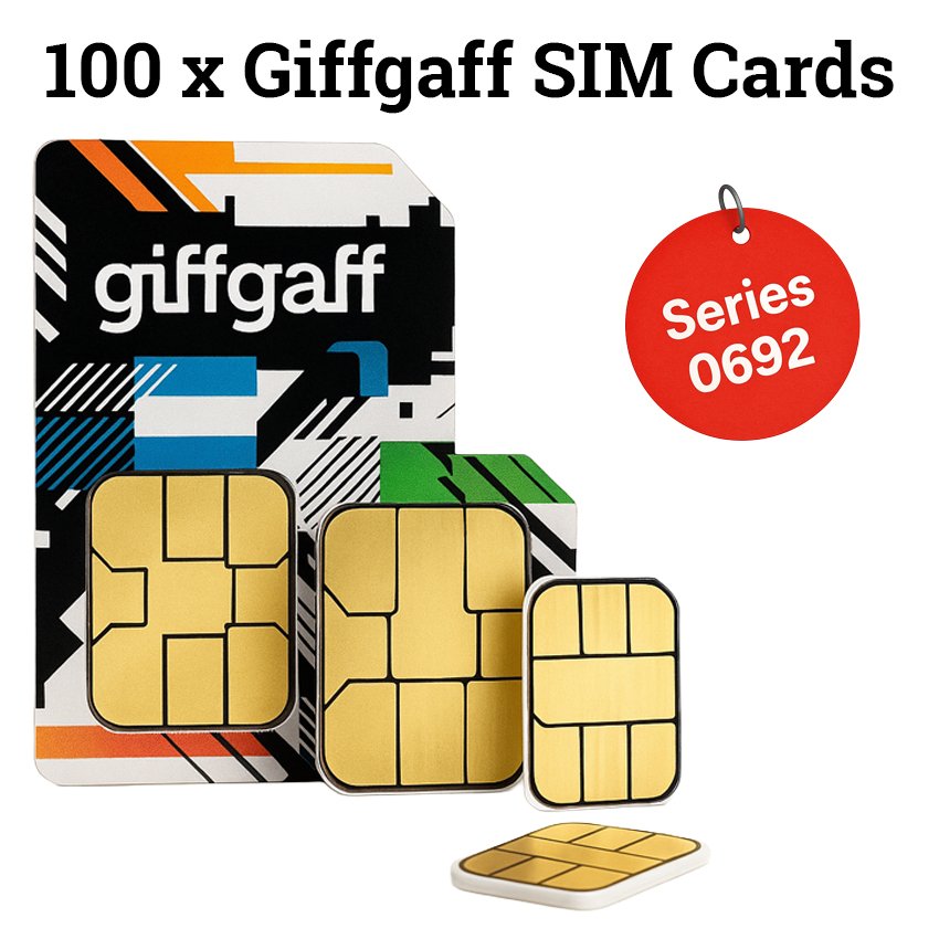 100 x Giffgaff UK SIM Cards – Series 0692 (Bulk Pack)