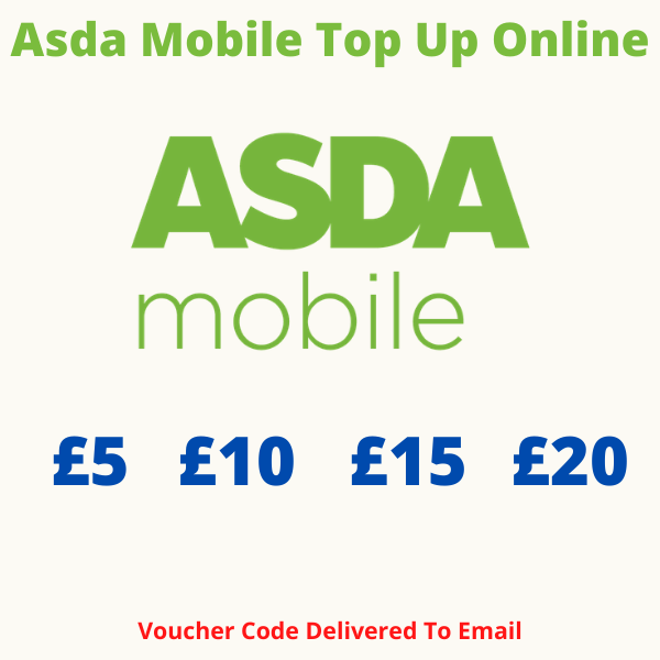 | Amount | £5 Asda Mobile Top Up Voucher Code, £10 Asda Mobile Top Up Voucher Code, £15 Asda Mobile Top Up Voucher Code, £20 Asda Mobile Top Up Voucher Code |