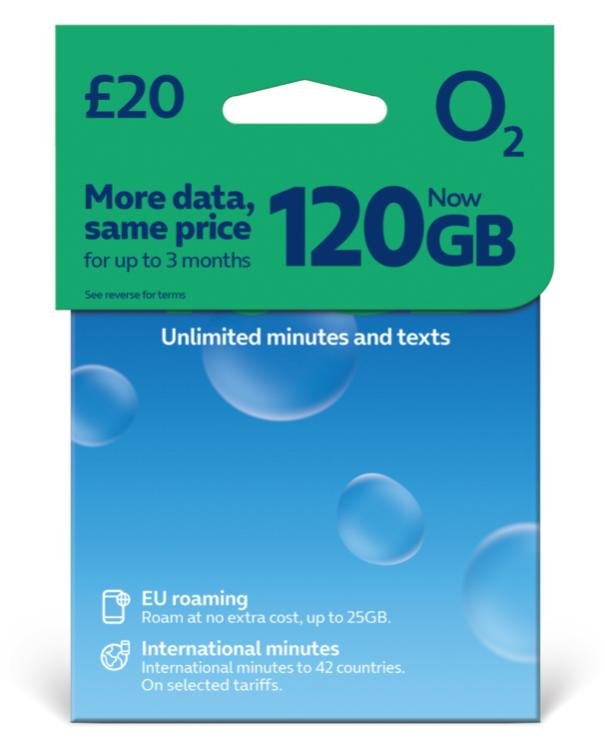 Get 120 GB data + unlimited calls and texts for just £20 on O2 Pay As You Go.