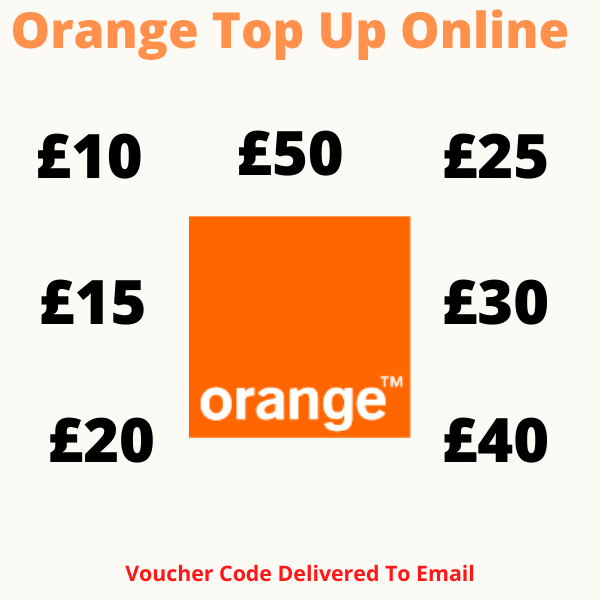 | Amount | £1 Orange Top Up Voucher Code, £2 Orange Top Up Voucher Code, £3 Orange Top Up Voucher Code, £4 Orange Top Up Voucher Code, £5 Orange Top Up Voucher Code, £10 Orange Top Up Voucher Code, £15 Orange Top Up Voucher Code, £20 Orange Top Up Voucher Code, £25 Orange Top Up Voucher Code, £30 Orange Top Up Voucher Code, £40 Orange Top Up Voucher Code, £50 Orange Top Up Voucher Code |